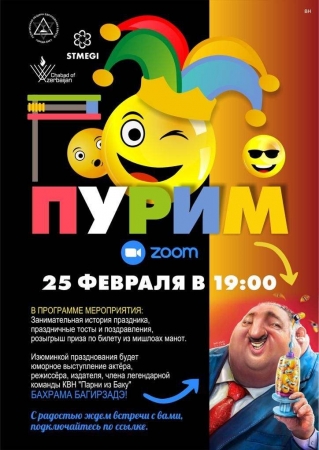 Çox yaxın zamanda biz yəhudi ilinin ən şən bayramı olan Purimi qeyd edəcəyik! Biz çox istərdik ki, bir araya gəlib bu bayramı birgə sevinclə qeyd edək, lakin bu günkü şərait bunu mümkün etmir.
