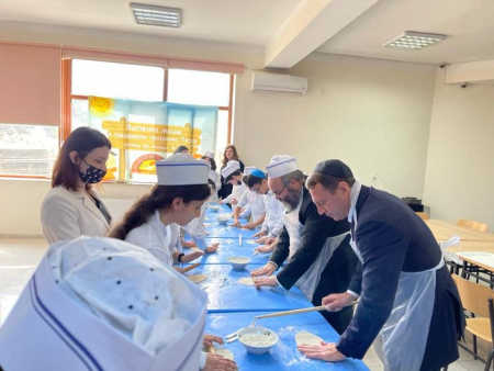 Yaxınlaşan Pesax bayramı ilə əlaqədar cənab Razvozov məktəbdə yəhudi yeməklərinin hazırlanması dərsində də iştirak etdi.