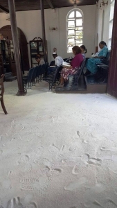Bəli, bu ənənə İspaniya və Portuqaliyadan gəlmişdi. Yəhudilər təqiblərdən gizlənərkən ibadət etdikləri zirzəmilərin döşəmələrini qumla örtürdülər ki, orada səsləri eşidilməsin və görsənməsinlər. Qum döşəmənin ikinci və üçüncü səbəbi isə simvolikdir: bizim həyat dövrümüz yerin, torpağın ətrafında dövr edir və biz bu qum kimi dünyanın hər yerinə səpələnmişik.