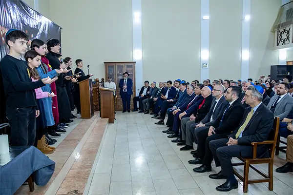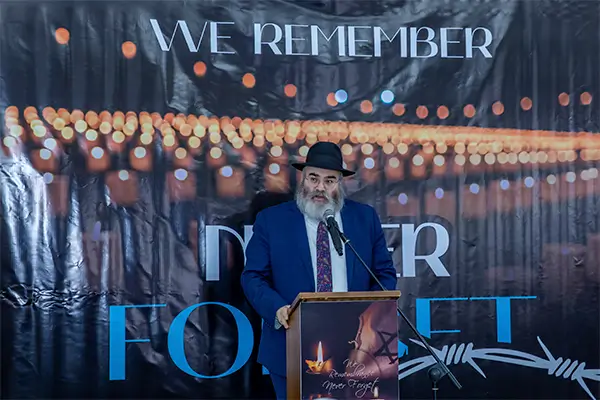 "Or Avner" Xabad yəhudi məktəbinin şagirdləri mərasimi qısa çıxışla açdılar. İcma rəhbərinin və səfirin çıxışlarından sonra: həlak olanların xatirəsinə altı şam yandırıldı, icma ravvinləri isə "El Male Rahamim" və "Kadiş" dualarını oxudular.