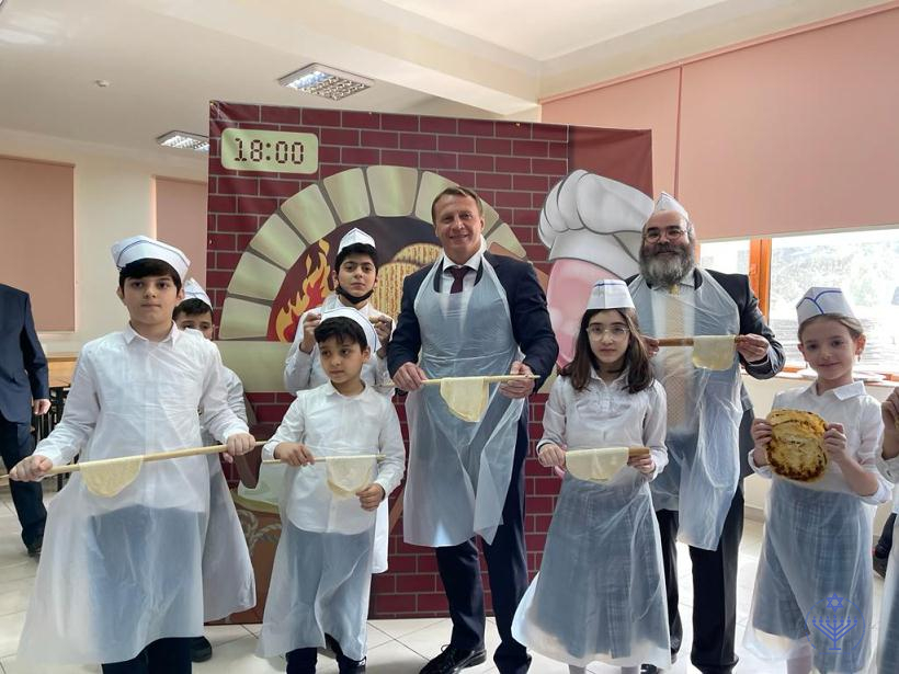 Yaxınlaşan Pesax bayramı ilə əlaqədar cənab Razvozov məktəbdə yəhudi yeməklərinin hazırlanması dərsində də iştirak etdi.