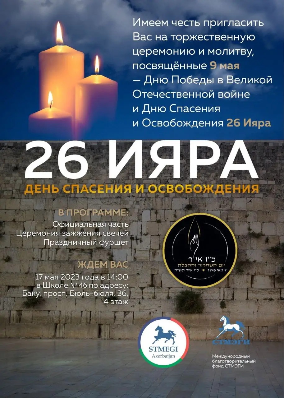 26 İyar bizə inancın və ümüdün gücünü xatırladır. Həyatımızda hansı çətinliklər və problemlər yaşansa da, hər zaman Allaha və Onun qorumasına arxalana bilərik. Qurtuluş və Azadlıq Günü həm də İkinci Məbəd dövründə baş vermiş tarixi hadisələrlə – yəni Seleukid yunan-suriya sülaləsinin hökmranlığından Yerusəlimin azad edilməsi ilə bağlıdır. Bu azadlıq yəhudi üsyançılarının – Mattatyahu Haşmonay və onun oğullarının qəhrəmancasına mübarizəsi nəticəsində mümkün olmuşdur.